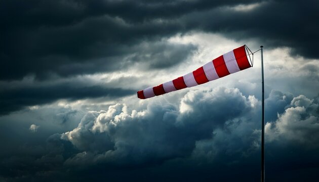 Horizontally flying windsock (wind vane) due to high wind. Blue sky in the background. Success concept.