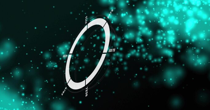 Spinning 3D segmented gauge ring in interface, showing numeric labels and glowing turquoise points