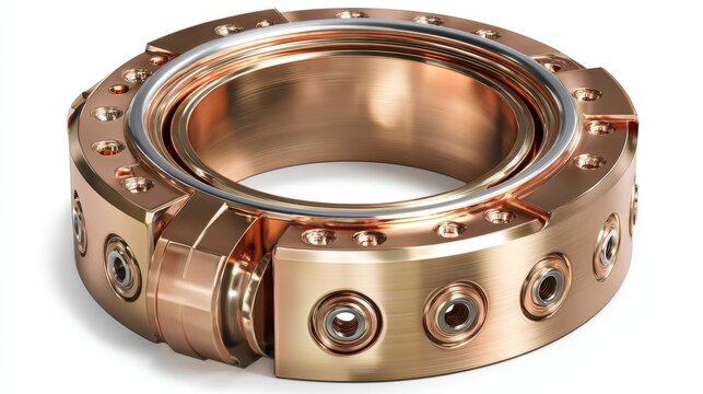 Close-up of metallic circular component featuring screws, holes, and segmented design, exhibiting detailed craftsmanship