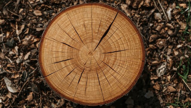 Close-up of an aged pedunculate oak stump revealing pronounced annual rings
