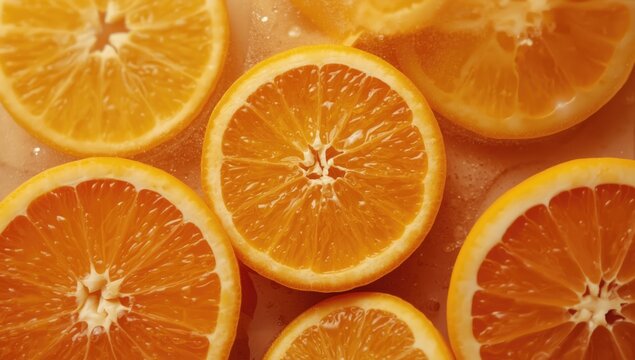 Detailed view of orange segments highlighting freshness, ideal for nutrition information backgrounds