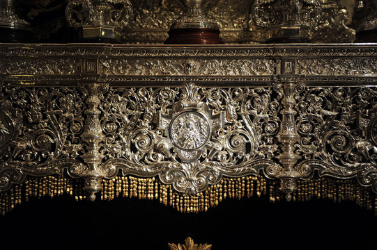 Respiradero de plata en un paso de palio, Semana Santa de Sevilla