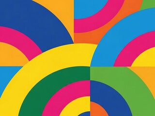 Colorful geometric arcs and squares in a vibrant abstract arrangement