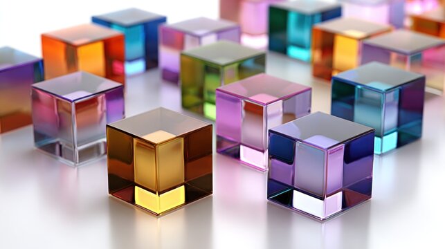 Vibrant geometric shapes create a dynamic and colorful abstract design with overlapping translucent polygons.