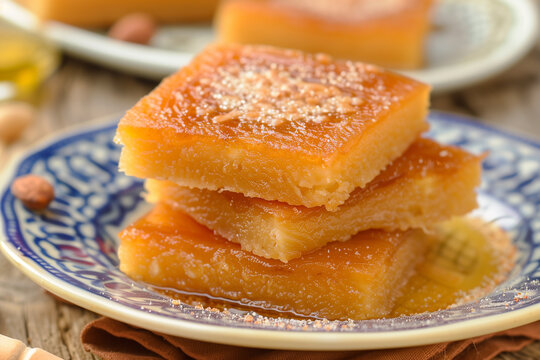 Middle eastern semolina cake basbousa. namoora, hareesa dessert. Turkish dessert.