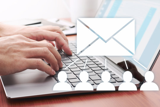 Marketing and business ideas through email, email or newsletter. email marketing or newsletter concept, sending e-mails. Easy to send and receive information online.