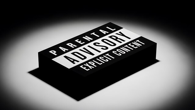 3D Parental Advisory Explicit Content Warning Logo Box Illuminated by Dramatic Spotlight. Restriction, Censorship, and Mature Media Content Icon Symbol on High Contrast Background.