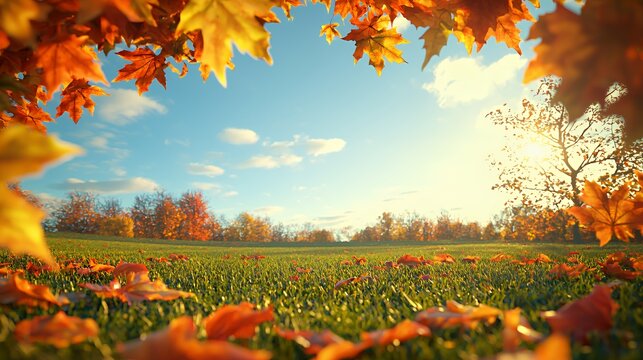 Autumn Landscape with Orange and Red Maple Leaves