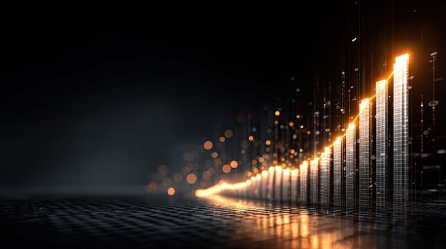 Neon financial analytics dashboard displaying interactive charts, callouts and data streams