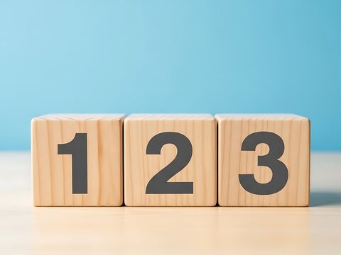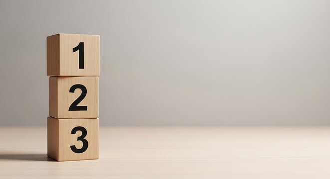 Stacked wooden cubes featuring numbers 1, 2, 3, representing sequential steps, prioritized stages, or a clear ordered process for concept illustration