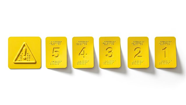 Tactile yellow Braille warning sign and sequential numbers for accessibility and visual impairment information