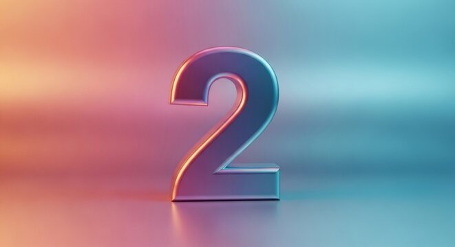 A Reflective Metallic Number Two Gleaming Under Soft Gradient Lighting Creating a Modern Abstract Visual
