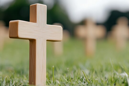 Serene cross in field with blurry grass foreground