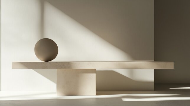 Geometric balance in a minimalist design with natural light and shadows in a serene interior space.