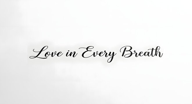 Elegant handwritten script displaying the phrase 'Love in Every Breath' on a plain white background, emphasizing simplicity and emotional expression