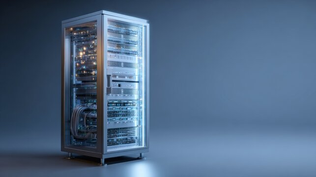 High-tech server rack display modern data center technology infrastructure sleek environment side view digital solutions