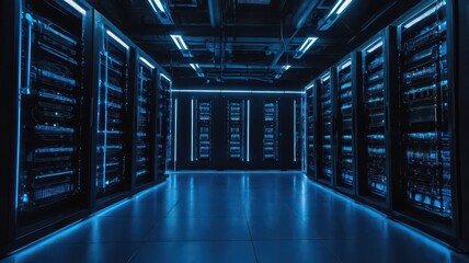 Modern data center with futuristic lighting in server room