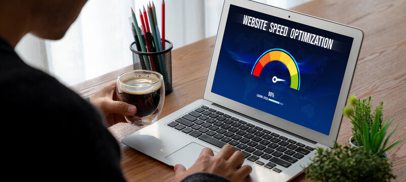 Computer software evaluating website loading speed. Concept of improving website loading speed snugly.