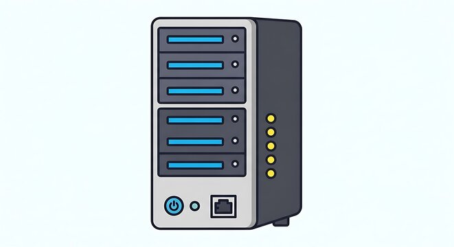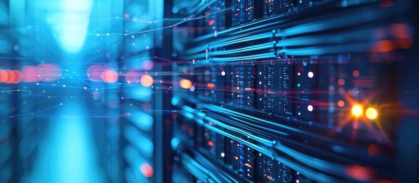 High-density server rack cluster with led cooling fans, industrial cabling, futuristic systems