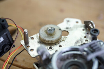 Electric motors for driving small household appliances. Ethereal accessories in the workshop.