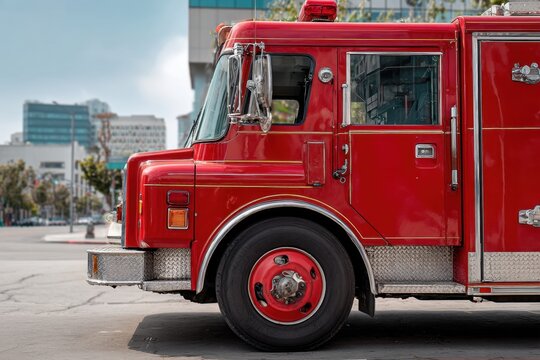 Two fire trucks race down a dusty path to combat a blazing forest fire, illustrating urgency, danger, and the heroic efforts of firefighters in a woodland setting.