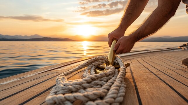 Setting sail anchoring adventure on a travel boat cruise at sea during sunset