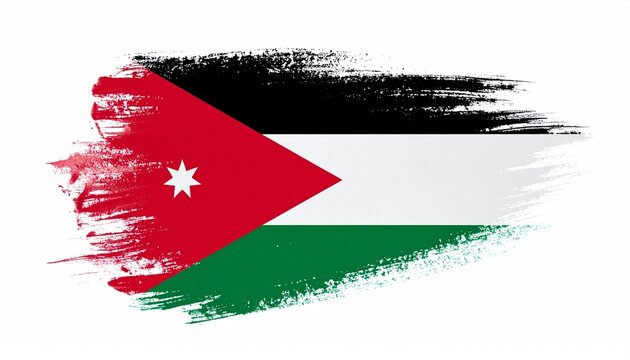 Jordanian Flag with Seven-Pointed Star in Brushstroke Style