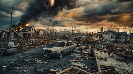 Earthquake epic lightning over cracked desolate earth and stormy skies