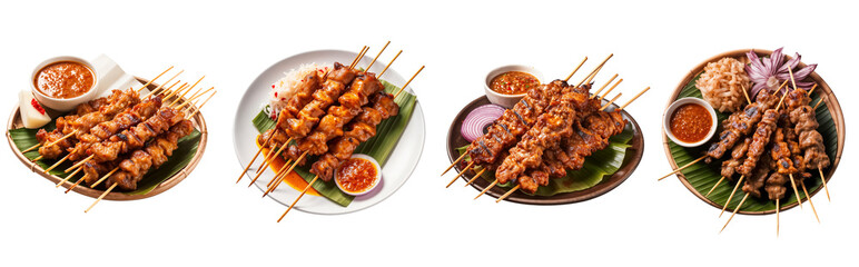 Set of chicken and pork satay isolated on white background