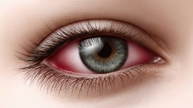 Conjunctivitis (Pink Eye),  illustration of an eye with soft pink shading around it, on a clean white background, medical