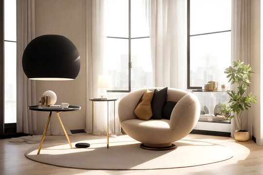Decorative lamp illuminating cozy bedroom with soft ambiance