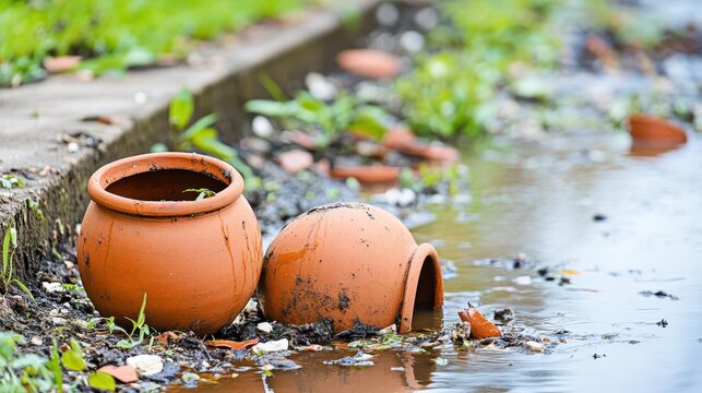 Overturned container spilling clear liquid on smooth surface