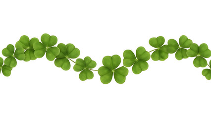 A wavy pattern of vibrant green three-leaf clovers forms a decorative border against a black backdrop isolated on transparent background