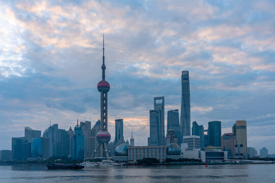 Sunset beautiful city skyline and river in Shanghai