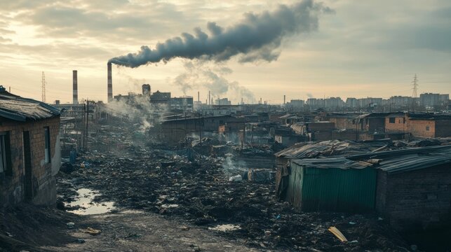 Corrugated metal and cardboard make up the construction materials for homes in a South African Township.
