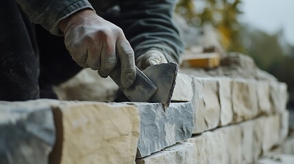 Mason Using Chisel to Shape Stone Block