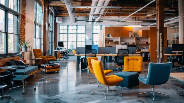 A shared office space with desks, chairs, and collaborative areas High quality images
