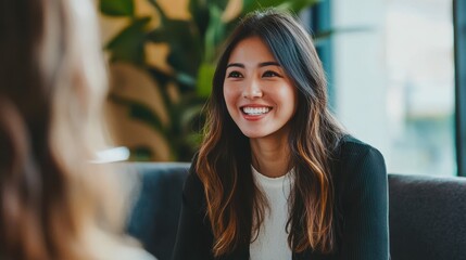 Professional group discussion led by a female executive, guiding a diverse team toward shared goals and inclusivity in a supportive digital workspace