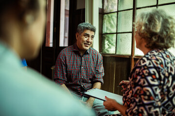 Generation bridging technology with grandparents and grandchildren relaxed at home