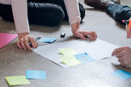 Hand puts heart sticky note on board showing team positive social impact and collaborative work