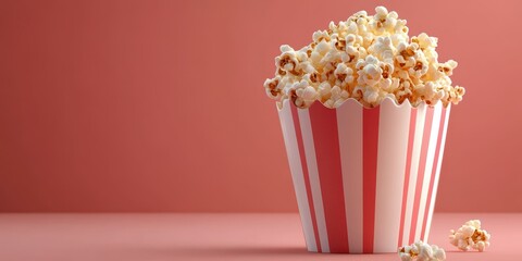 Delicious popcorn in a classic striped bucket ready for movie night at home