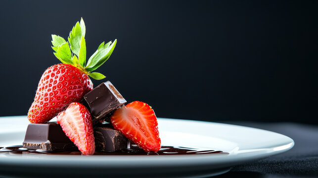 Delicious strawberries and chocolate on dessert plate, perfect for sharing