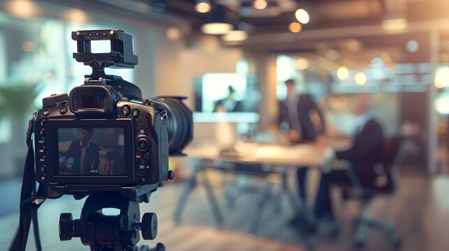 Photographer adjusts dslr with glitter bokeh effect in studio