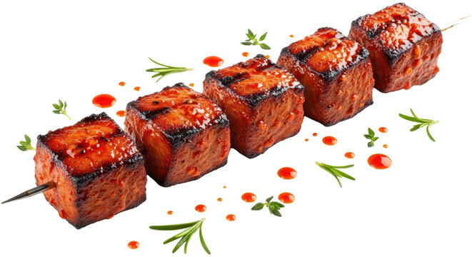 Grilled marinated pork meat cubes on a skewer isolated PNG with Transparent Background