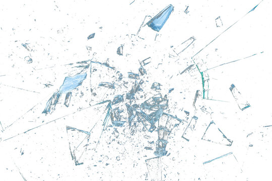 Broken glass on white and transparent background.
