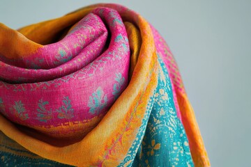 Vibrant multicolored pashmina shawl with intricate floral patterns, showcasing rich colors and soft texture.