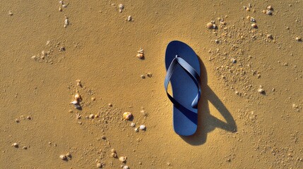 In summer, the sandy beach with scattered shell fragments forms a picturesque coastal scene, offering wide copy space for designs, advertisements, or seasonal creative visuals