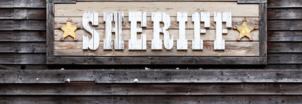 Sheriff sign on vintage background, wild west design. Concepts of justice, protection and security