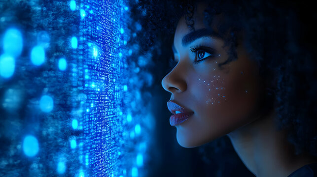 Woman Looking at Blue Digital Code Illustration