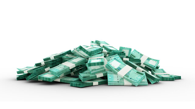 3D Stack of 1000 Somali shilling notes isolated on transparent background. Somalia currency